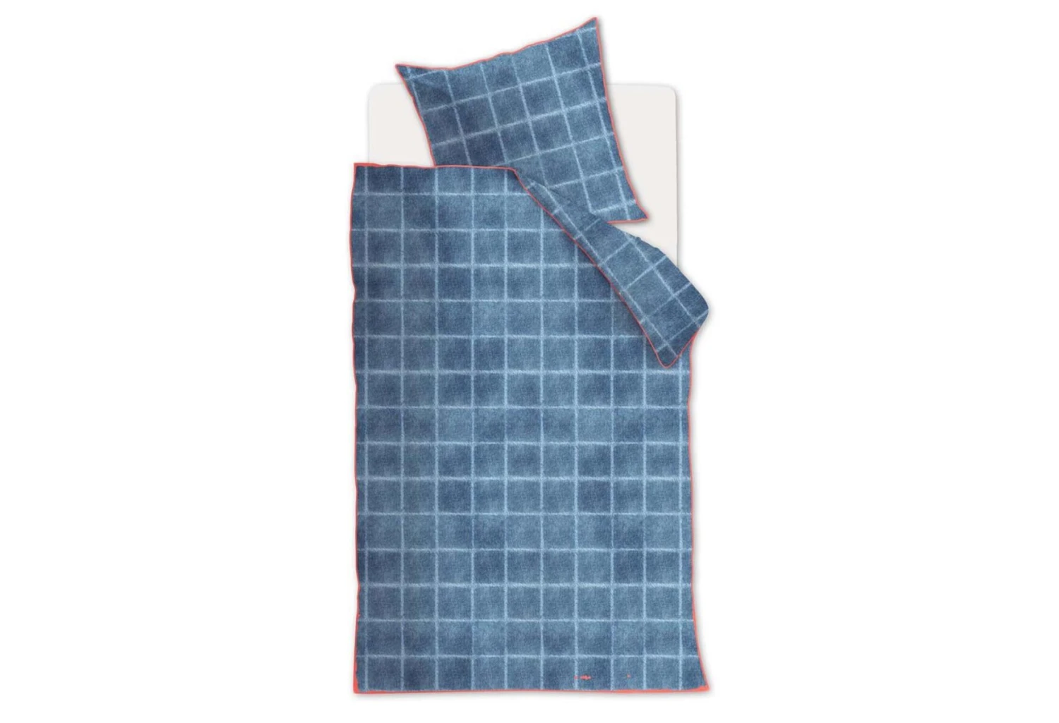 Wer sich für einen coolen Look im Schlafzimmer entscheidet, wählt die Bettwäsche Denim aus der Kollektion At Home by Beddinghouse. Auf der Bettwäsche befindet sich ein Karomuster auf einer aufgedruckten Jeansstruktur. Der Bettbezug und die Kissenbezüge haben eine schöne orangefarbene Einfassung, was für einen modernen Kontrast sorgt. Die Bettwäsche ist aus hochwertiger reiner Baumwolle, 144 TC, gefertigt. Der Bettbezug ist mit einem Reißverschluss ausgestattet.