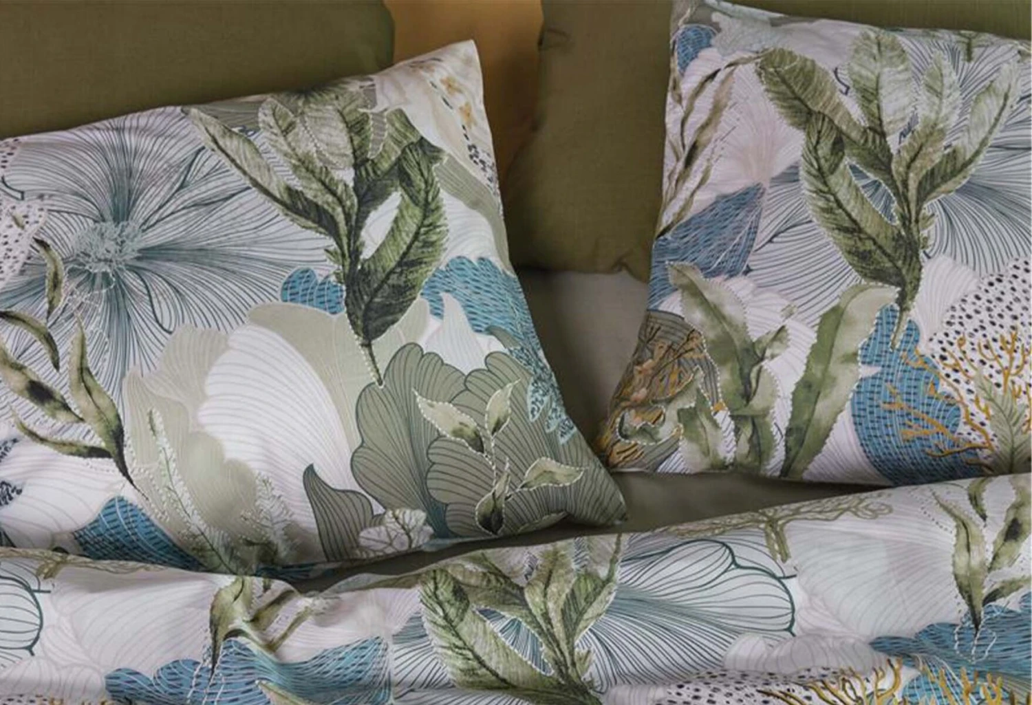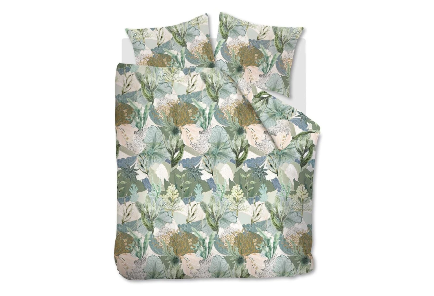 Die Bettwäsche Hidden aus der Kollektion von At Home by Beddinghouse hat ein anmutiges Muster, das von der Unterwasserwelt inspiriert ist. Das Dessin ist aus verschiedenen Korallen und Unterwasserpflanzen in prachtvollen, kühlen Blau- und Grüntönen aufgebaut. Die Bettwäsche ist aus hochwertiger reiner Baumwolle, 144 TC, gefertigt. Der Bettbezug ist mit einem Reißverschluss ausgestattet.