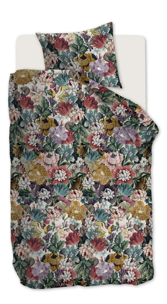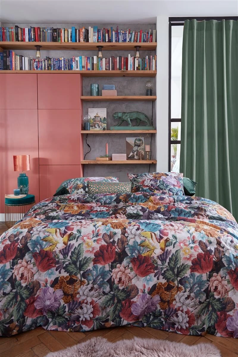 Blumen und Farbe. Das ist die beste Art, um die Bettwäsche Times Gone By aus der Kollektion At Home by Beddinghouse zu beschreiben. Auf dem gesamten Bettbezug ist ein Digitaldruck mit Blumen abgebildet. Zwischen den Blumen sind schöne, zierliche Vögel zu sehen. Durch die zusätzliche Struktur scheint der Bettbezug einem Wandteppich zu ähneln. Die Farbpalette aus den schönen tiefen Farben Rot, Lila, Ocker, Flieder, Rosa, Blau, Petrol, Orange, Schwarz, Grau und Braun verstärkt diesen Vintage-Effekt noch weiter. Die Bettwäsche ist aus hochwertiger reiner Baumwolle, 144 TC, gefertigt. Der Bettbezug ist mit einem Reißverschluss ausgestattet.