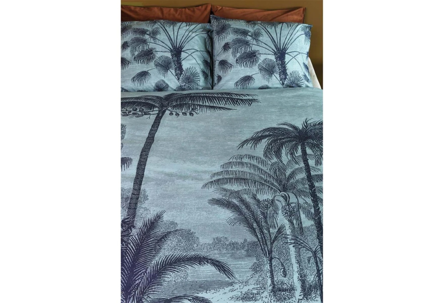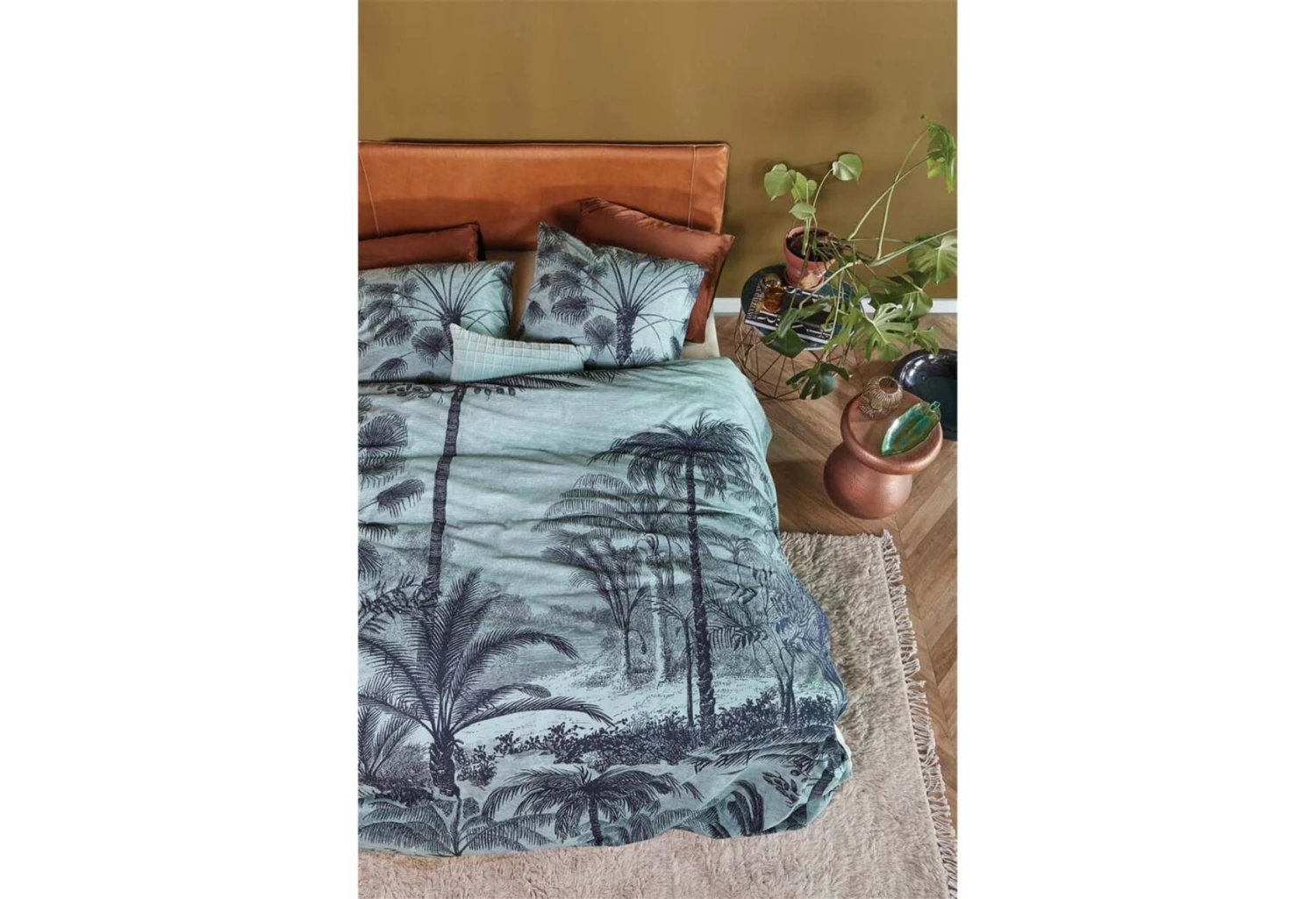 Eine prachtvolle botanische Landschaft ziert die Bettwäsche Tour du Monde aus der Kollektion At Home by Beddinghouse. Auf der Zeichnung sind verschiedene Palmen zu sehen. Die gedruckte schwarze Strichzeichnung kommt auf dem einfarbigen Untergrund besonders gut zur Geltung. Die Bettwäsche Tour du Mond ist wie ein Gemälde im Schlafzimmer. Die Bettwäsche ist aus hochwertiger reiner Baumwolle, 144 TC, gefertigt. Der Bettbezug ist mit einem Reißverschluss ausgestattet.