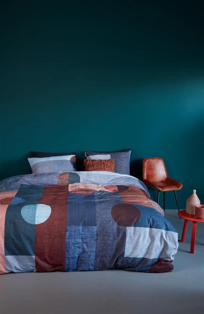 Bettbezug Montessori hat ein Muster aus vertikalen Streifen unterschiedlicher Breite auf einem gewebten Druckgrund, die hier und da in Rechtecke mit einem Kreis unterteilt sind, . Die Formen sind in den Farben Orange, Grün, Rosa und Braun gehalten. Beddinghouse zielt darauf ab, schöne Kollektionen zu entwerfen, die den Menschen und die Umwelt in den Mittelpunkt stellen. Aus diesem Grund ist Beddinghouse Mitglied der Better Cotton Initiative, einer Organisation, die sich der Verbesserung des Baumwollanbaus weltweit widmet. Die Bettwäsche ist aus hochwertiger reiner Baumwolle, 144 TC, gefertigt. Baumwolle ist ein atmungsaktives und feuchtigkeitsaufnehmendes Naturprodukt. Die Bettwäsche fühlt sich durch die spezielle Verarbeitung komfortabel und angenehm weich an. Der Bettbezug ist mit einem Reißverschluss ausgestattet.