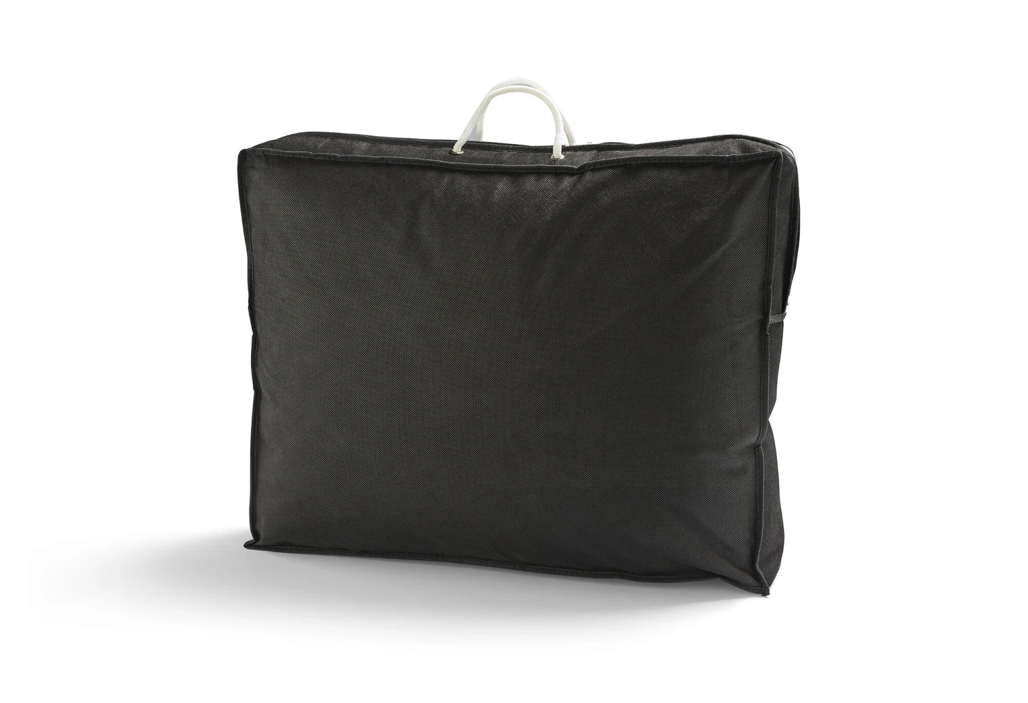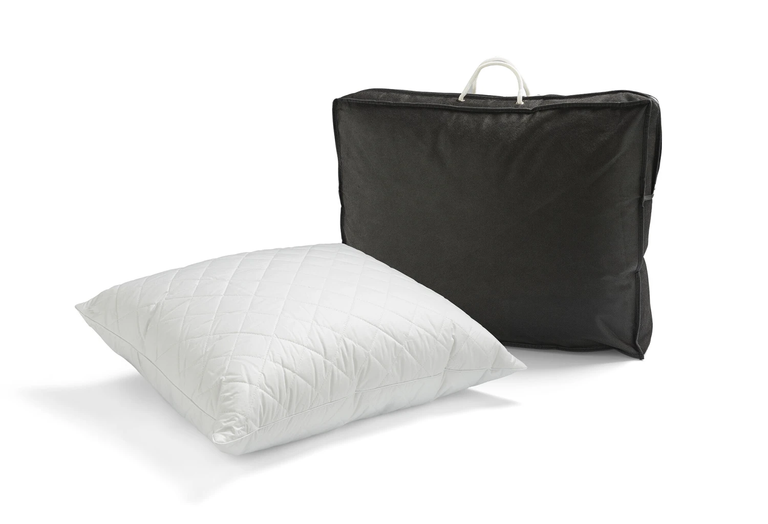 Das Dixxius Breeze Kapok Kopfkissen ist dank seiner außerordentlich weichen und leichten Füllung sehr komfortabel und sorgt für ein angenehm kühles Liegegefühl. In seiner praktischen schwarzen Tasche lässt es sich außerdem ganz einfach auf Reisen mitnehmen.