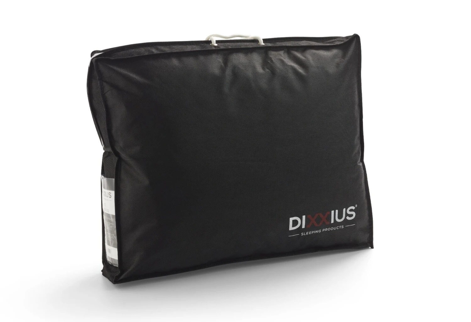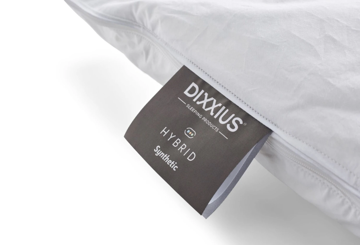 Das Dixxius Hybrid Synthetik Kissen ist höhenverstellbar. Der Kern besteht aus zwei Teilen. Der flache Teil besteht aus Komfortschaum, der die Höhe und Härte des Kissens beeinflusst. Der ventilierende Teil aus Talalay-Latex mit speziellen Konturen sorgt für Unterstützung und eine optimale Druckentlastung.