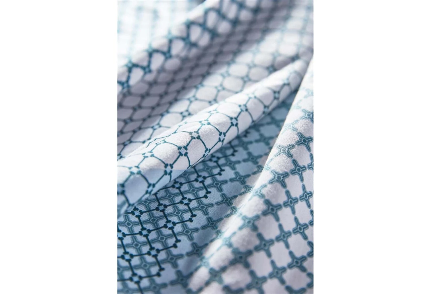 Die Bettwäsche Retrospect weist einen subtilen Verlauf sehr kleiner Motive auf, wie man sie auch bei verschiedenen Modemarken sieht. Jedes Motiv ist wunderschön in einer feinen Zeichnung ausgearbeitet und geht in das nächste Motiv über. Dies sorgt für einen ganz besonders raffinierten Anblick. Die Verwendung heller Farben ergibt einen spannenden Rhythmus. Es handelt sich um Graugrün, verschiedene Blautöne und gebrochenes Weiß, was für einen modernen Touch sorgt. Das helle Blau gibt der Bettwäsche einen besonders erfrischenden Farbakzent. Durch das besondere Satingewebe fühlt sich wunderbar weich an. Der Glanz des Satins verleiht der Bettwäsche eine schicke Note. Die Bettwäsche ist aus Mako-Satin, reine Baumwolle 220 TC, gefertigt. Der Bettbezug hat einen edlen Glanz und fühlt sich durch die Satinbindung glatt an. Bei einer Satinbindung werden mehr Fäden verwendet – das Gewebe wird dichter. Mako-Satin besteht aus hochwertiger reiner Baumwolle, ist atmungsaktiv und feuchtigkeitsabsorbierend. Der Bettbezug ist mit einem Reißverschluss ausgestattet.