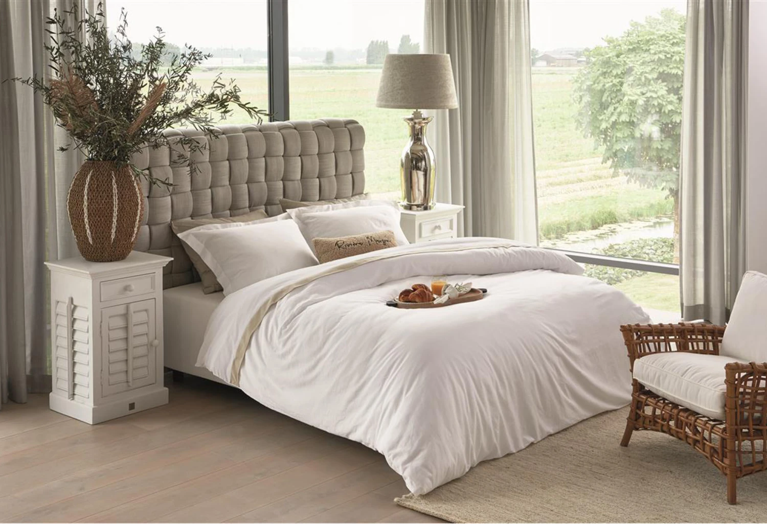 Der Bettbezug Rivièra Maison Ease ist eine elegante Wahl, sowohl was das Aussehen als auch die Qualität betrifft. Der Bezug ist aus einer Mischung aus Baumwolle und Leinen gefertigt und somit die ideale Wahl für die Frühjahrssaison. Der Bettbezug ist einfarbig und hat einen Oxford-Rand auf dem Bezug und an den Kissenbezügen.