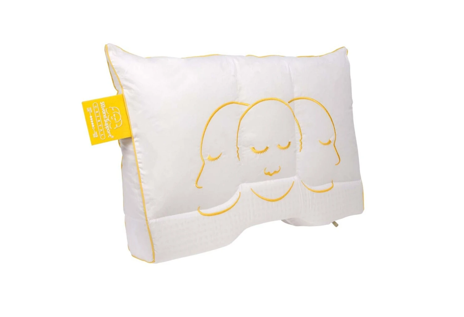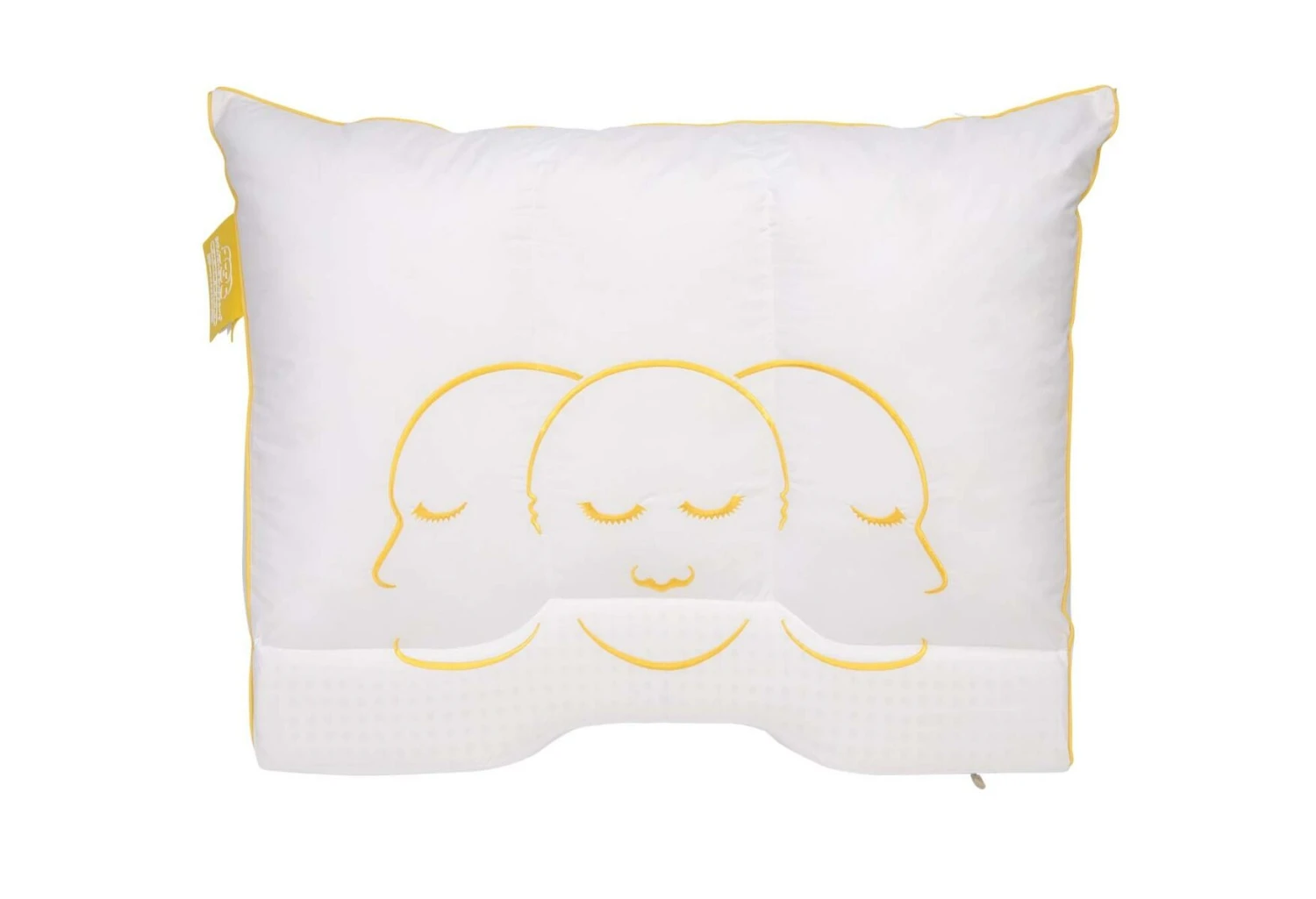 Der Bezug des Kissens ist aus 100% hochwertiger Baumwolle und ist gegen Hausstaubmilben behandelt. Rundum ist der Bezug mit einer gelben, gestickten Biese abgesetzt. Das Kissen verfügt über eine vorgeformte Schulterkontur sowie über eine Nackenstütze.
