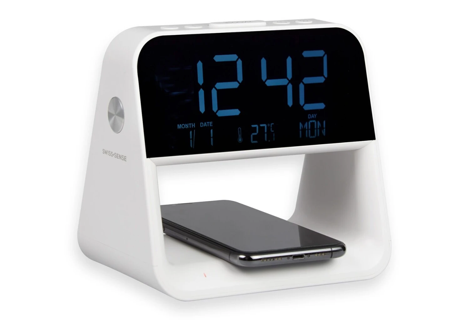 Dank integriertem Wireless Charger können Sie mit diesem Multifunktionswecker sogar Ihr Handy ganz bequem aufladen, während Sie friedlich schlummern. Legen Sie Ihr Mobiltelefon einfach auf den Wecker und es wird automatisch aufgeladen. Auf diese Weise benötigen Sie nur eine Steckdose. Der Wecker unterstützt kabelloses Laden über die sogenannte Qi-Technologie, also über Induktion. Stellen Sie sicher, dass Ihr Smartphone mit dem Qi-Standard kompatibel ist.