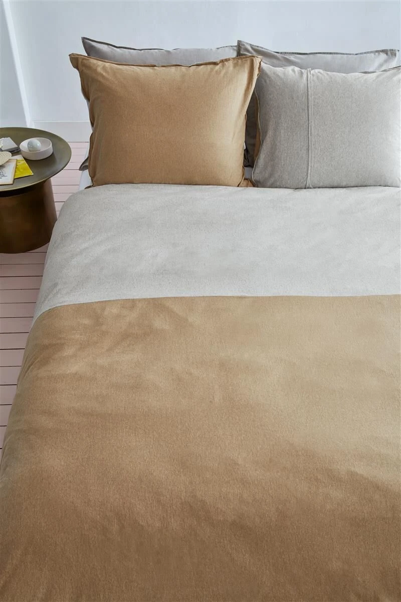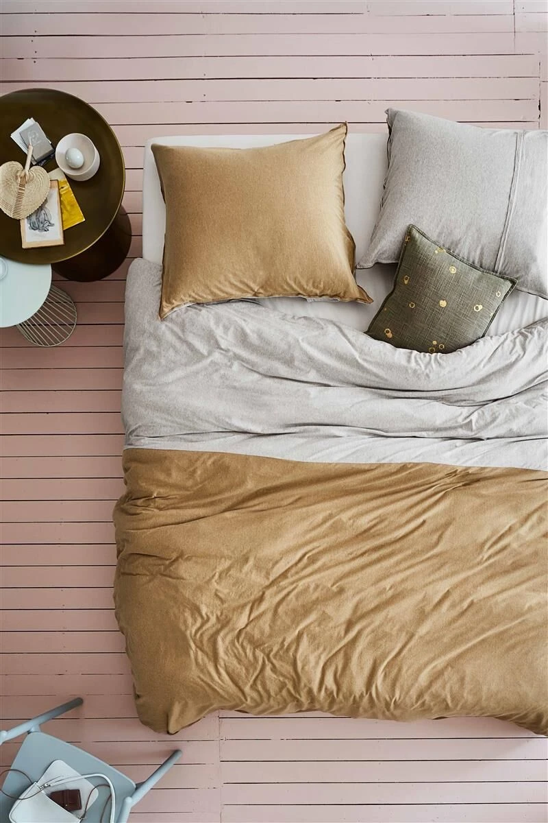 Die Bettwäsche Comfy Duotone ist aus weichem Baumwolljersey gefertigt. Das Dessin besteht aus zwei Streifen in den Farben Ockergelb und Sand. Der Kissenbezug ist mit einer robusten Steppstichnaht vollendet und die Vorder- und Rückseite sind farblich unterschiedlich. Die Farben der Kissenbezüge sind auf die Farben des Bettbezugs abgestimmt. Die Bettwäsche ist aus reinem Baumwolljersey gefertigt. Der Bettbezug ist mit einem Reißverschluss ausgestattet. Die Bettwäsche ist bis 60 Grad waschbar, trocknergeeignet und kann gebügelt werden.