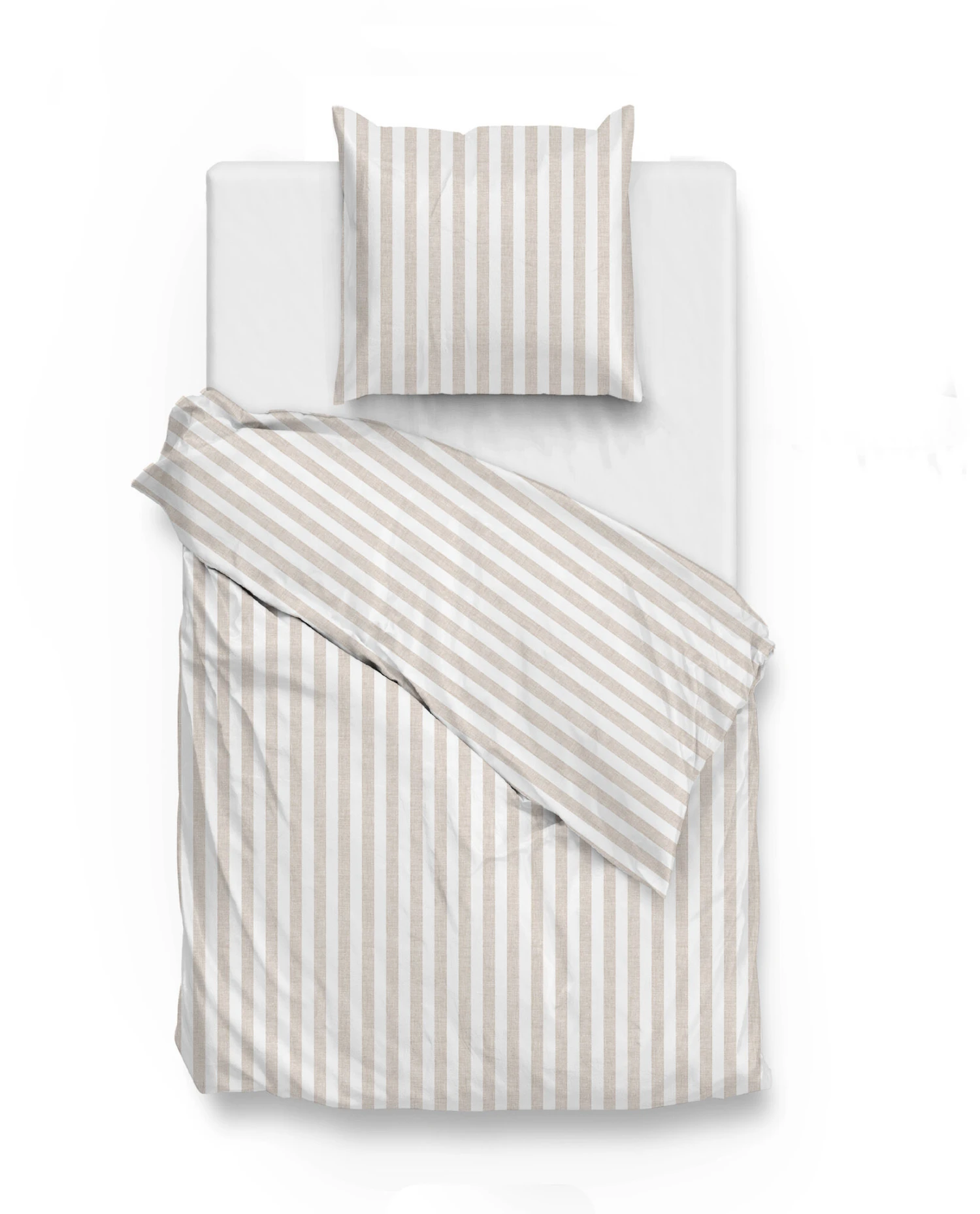Banda di Lino Bettwäsche Sandfarbenes Beige. Die Bettwäsche ist mit einem Reißverschluss und traditionellem Streifenmuster in einem sandigen Beige versehen. Diese klassisch weiß-beige gestreifte Bettwäsche ist aus glatter und weicher Baumwolle gefertigt. Das sorgt für einen angenehmen Schlaf und strahlt Ruhe und Wärme aus. Diese Bettwäsche ist elegant und lässt sich leicht mit vielen Schlafzimmerstilen kombinieren. ZoHome verbindet Basic Chic Design mit Langlebigkeit und Qualität. ZoHome glaubt an eine nachhaltige Beziehung und Verbindung mit dem Kunden. Die Designs von ZoHome passen zu jeder Einrichtung und sind aus 100% hochwertiger Baumwolle gefertigt. Baumwolle ist ein Naturprodukt, das atmungsaktiv ist und Feuchtigkeit gut absorbiert. Wird mit passendem Kissenbezug geliefert. Starke Qualität und in verschiedenen Farben und Größen erhältlich, so dass sie für hohe Matratzen, Boxspringbetten und lange Bettdecken geeignet ist. Oekotex-zertifiziert.